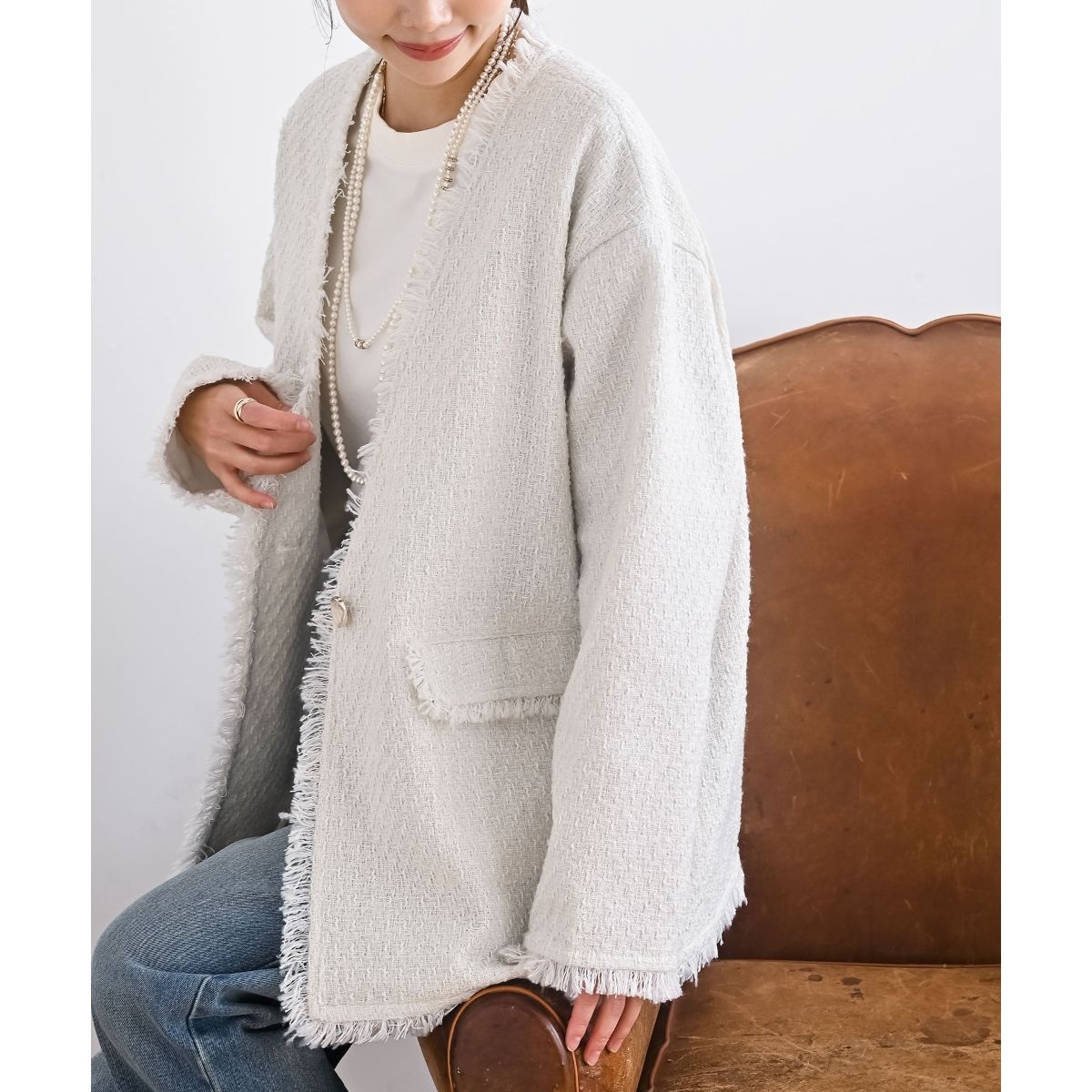 アイボリー ツイード ジャケット