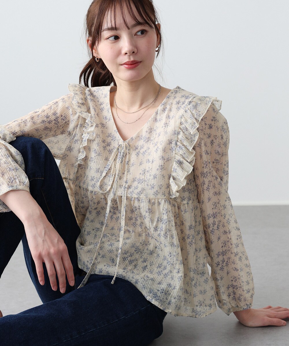 小花柄×フリルが大人かわいいフリルブラウス