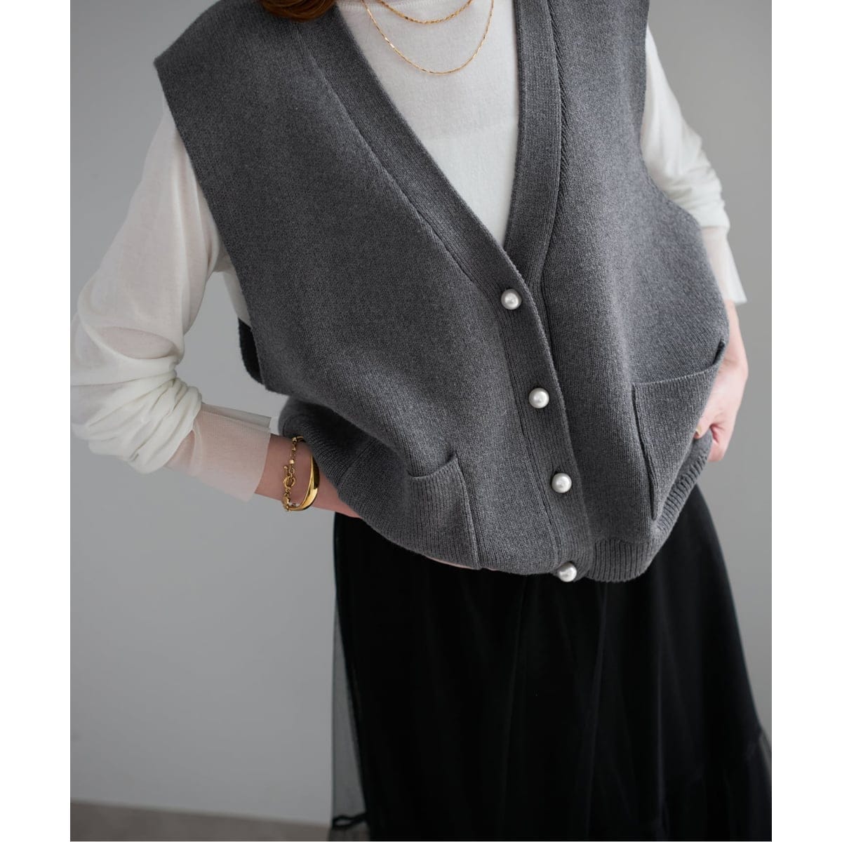 パール付きベスト Mサイズ グレー