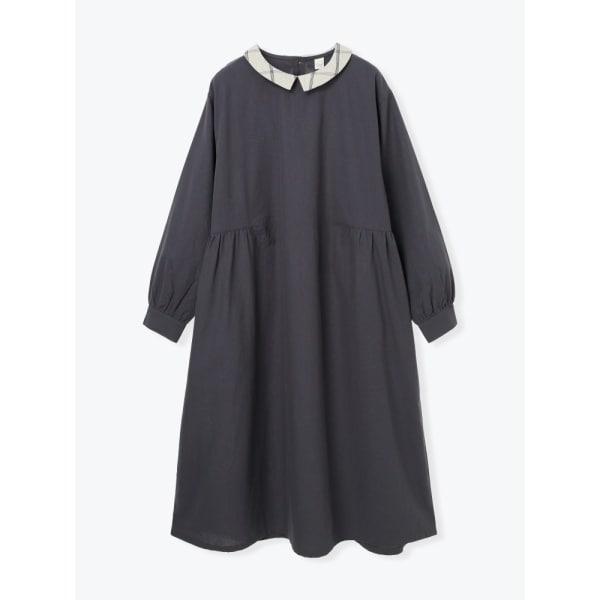 ギャザー切り替えを施すことで立体感のあるシルエットに仕上げたワンピース。