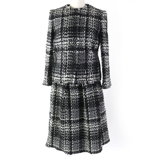 【ドンドン見直し】極美品☆DOLCE&GABBANA ドルチェ&ガッバーナ モヘア アルパカ混 ツイードジャケット ワンピース セットアップ ブラック ホワイト 36・38 イタリア製 正規品 レディース