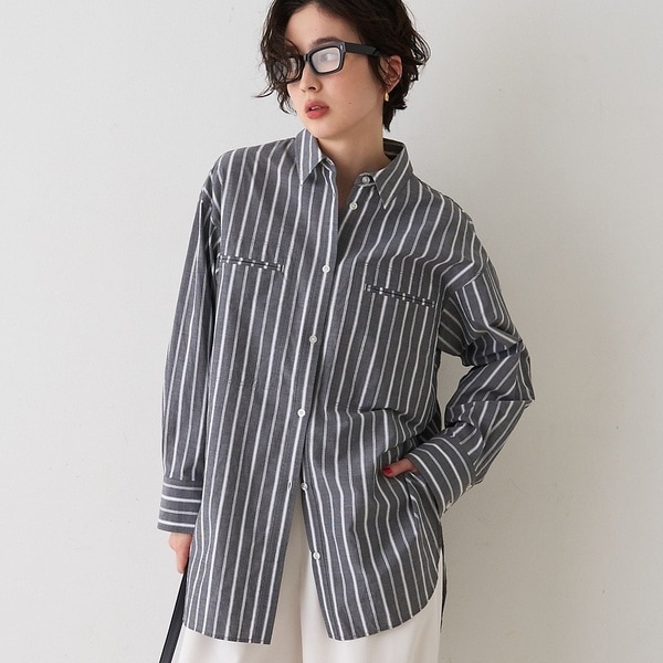 存在感のあるストライプが目を引く胸ポケットシャツ。