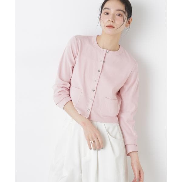 UNTITLEDクルーネックカーディガン 七分丈 綿100%入り ミントグリーン