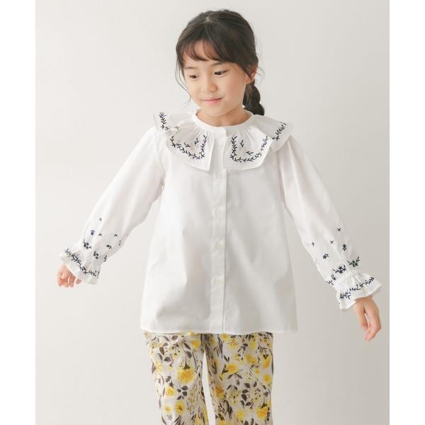 フリルカラーと袖口にオリジナル刺繍をあしらったブラウスが登場。袖口はゴム付きで機能性もよく、さりげないフリルが可愛らしいデザイン。一枚着るだけで、コーディネートの主役になるアイテムです。襟付きなので、きちんと感が出るので発表会やちょっとしたお出かけにぴったりです。一枚はもちろん、ジャンスカやキャミソールなどのインナー使いにもおすすめ。