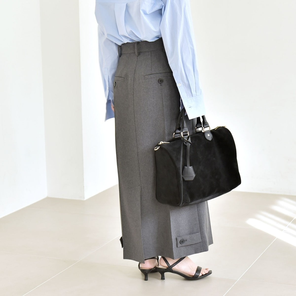 quaranciel:〈洗濯機可能〉ウーステッド ステッチ Iライン ロング スカート