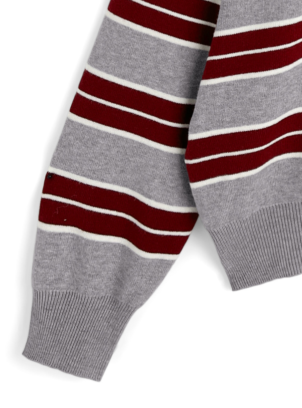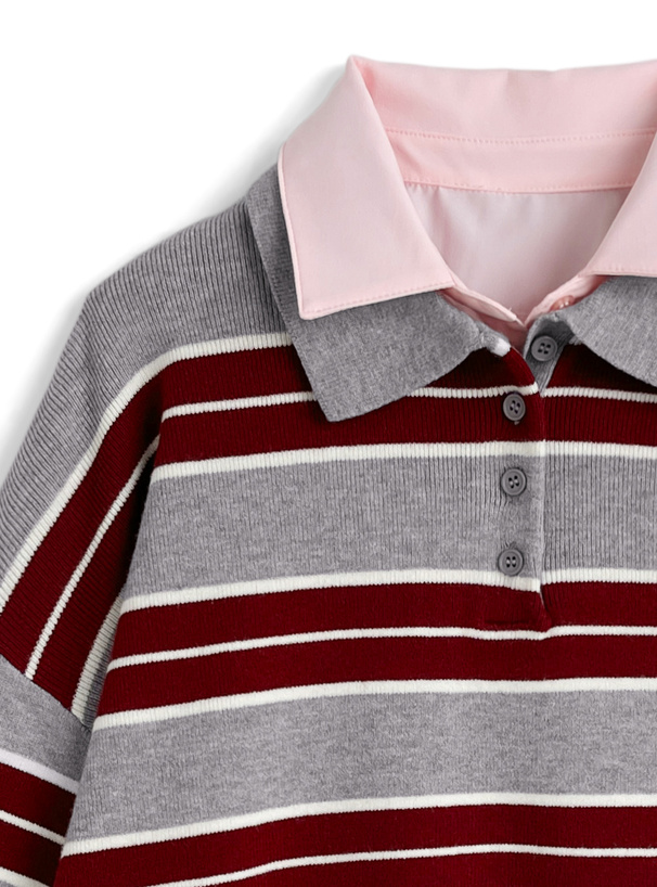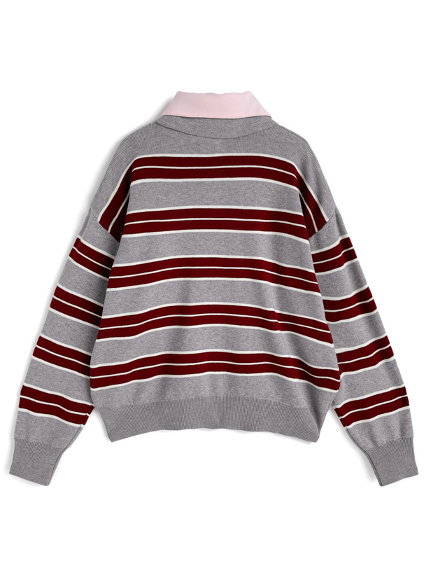 シャツを重ね着したようなレイヤード風デザインのニットトップス。