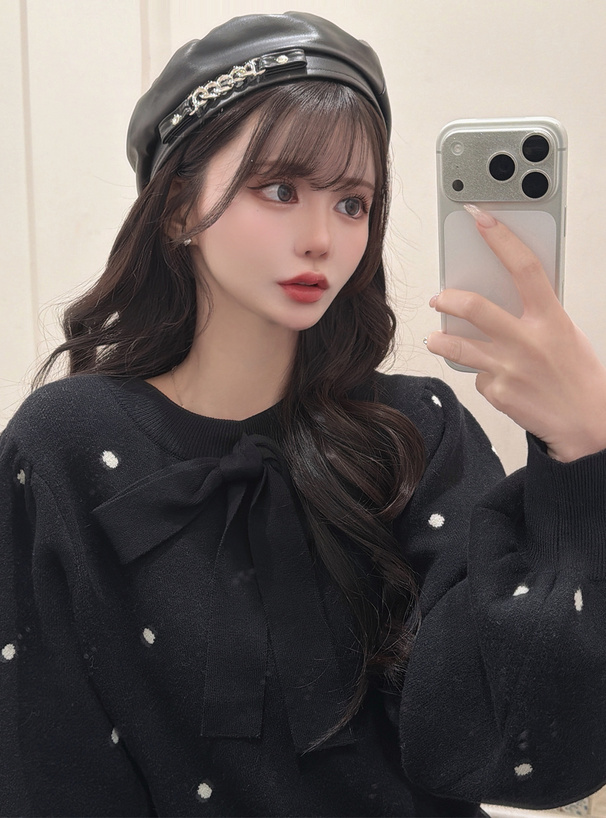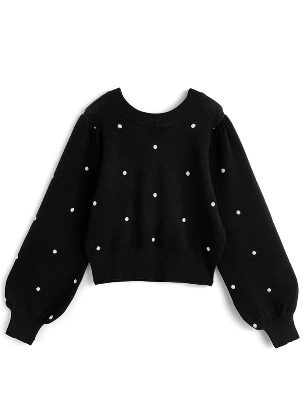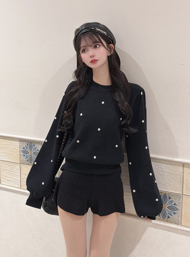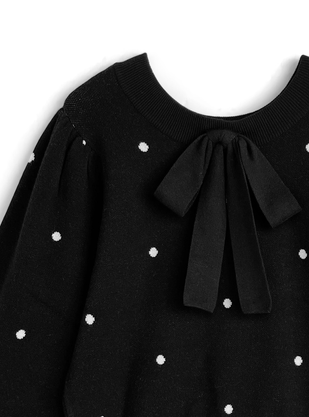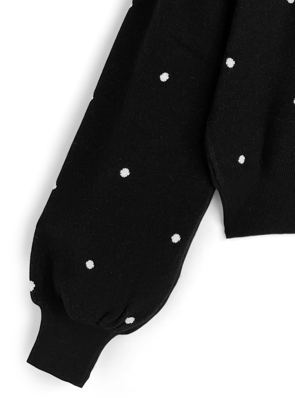 水玉柄をジャガード編みで表現したニットプルオーバー。