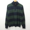 G■トミーヒルフィガー/TOMMYHILFIGER ハーフジップニットセーター【L】紺緑/men's/10【中古】■