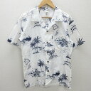 d■パームウェーブ/PALMWAVE HAWAII 総柄 半袖開衿アロハシャツ【S】白/MENS/52【中古】■