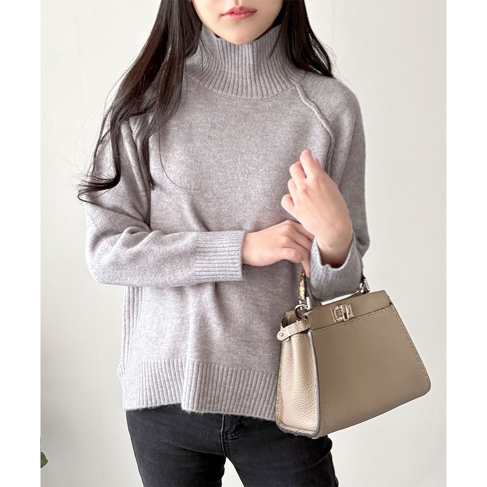 【INDIVI】パフスリーブ ボトルネックニット