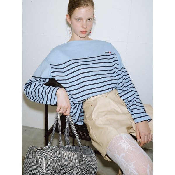 こだわりのボーダーピッチで編み立てたカットソー生地を使用したアイテム。ややビッグシルエットのデザインがポイント。今期のFURFURオリジナルのチェリーモチーフをワンポイントで刺繍しています。