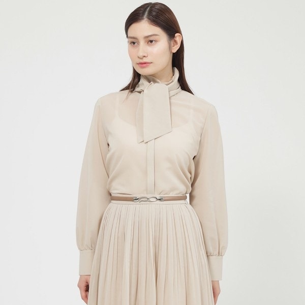 長めのボウタイがラグジュアリー感をプラスするブラウスです。