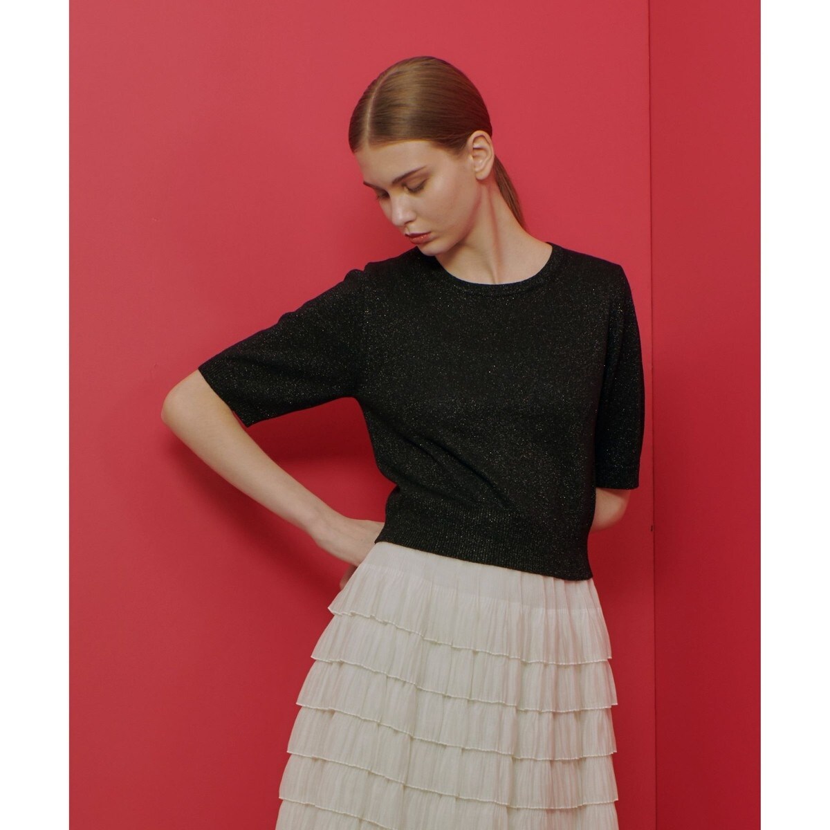 メランジェが美しい光沢を放つ、イタリア製ラメ糸を使用した半袖プルオーバー。