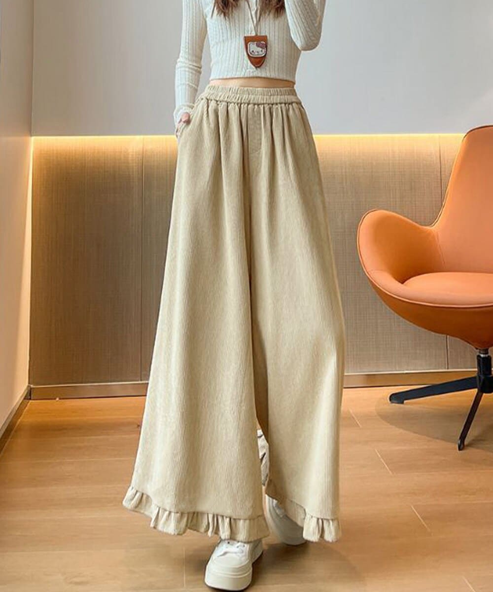 表情のある薄手コーデュロイ素材で、春秋のデイリーに活躍するワイドパンツ。