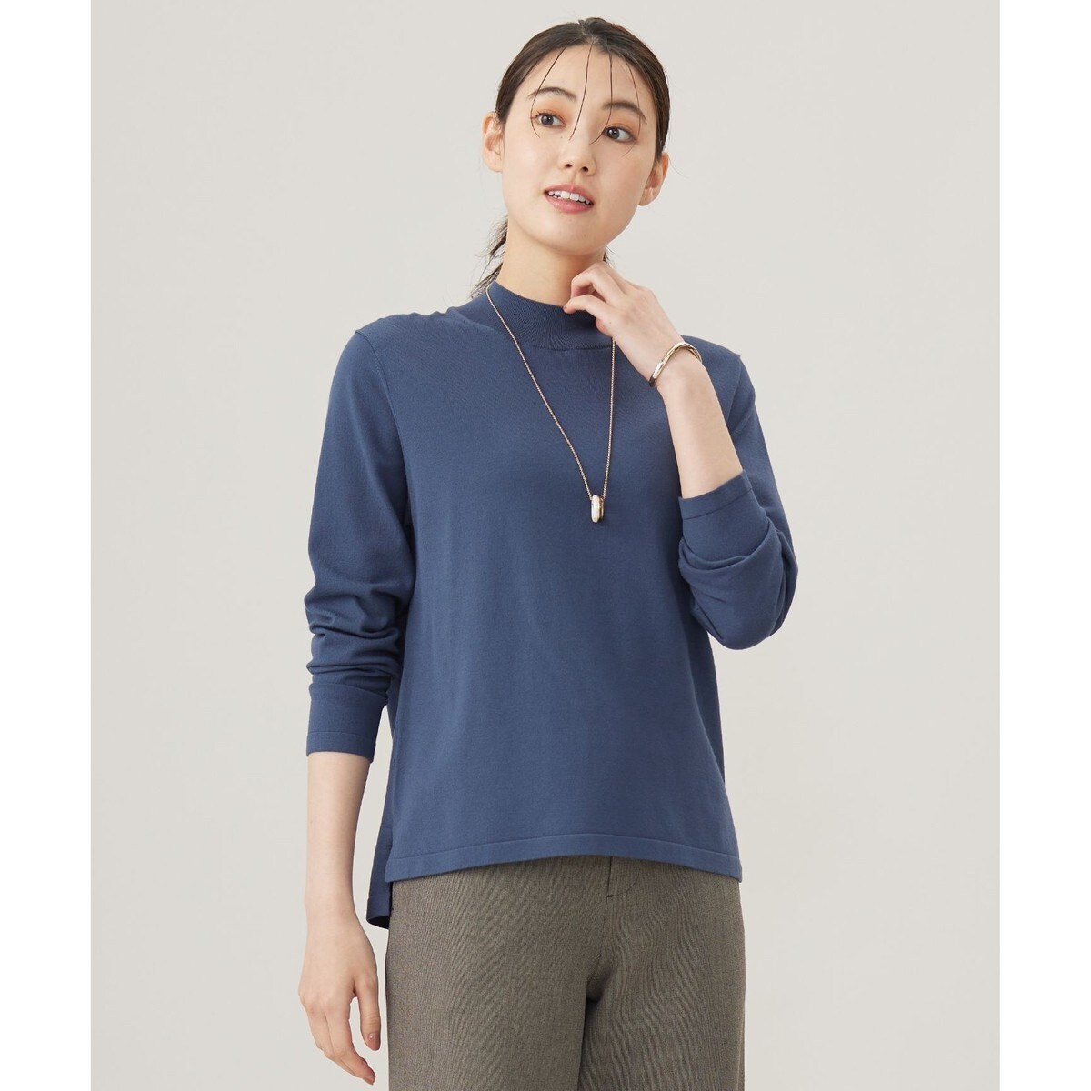 肌触りが滑らかな、首周りの冷えを軽減するハイネックニット