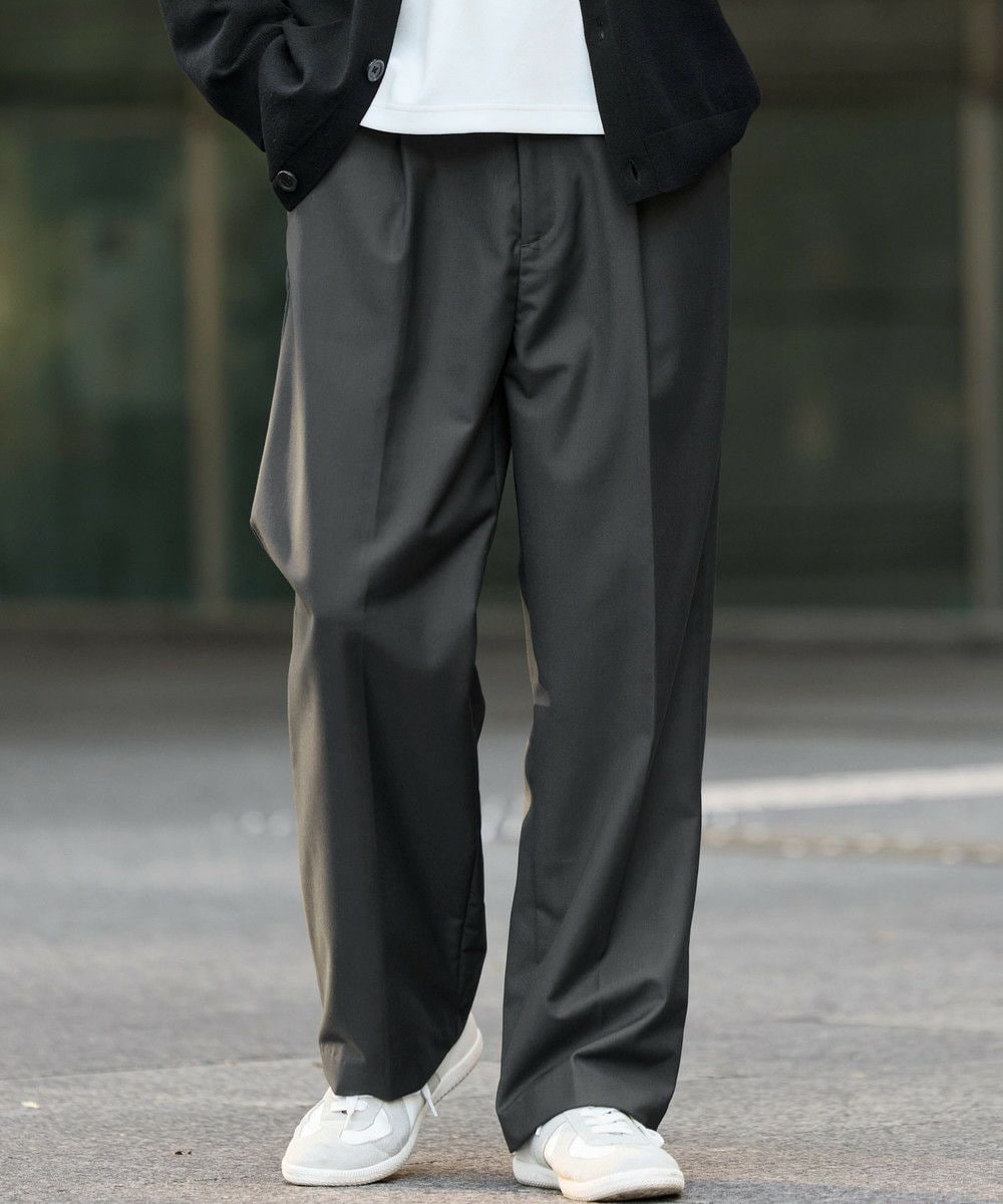 ワイドパンツ スラックス タック ネイビー Lサイズ