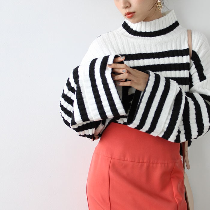 【forksy.】ワイドスリーブ&クロップド丈 リブニット 【新品未使用】 長袖ニット