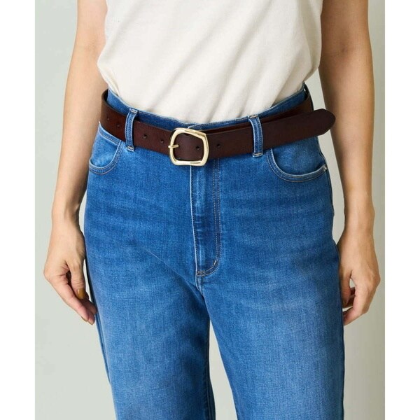 スクエア型バックルのレザーベルト。