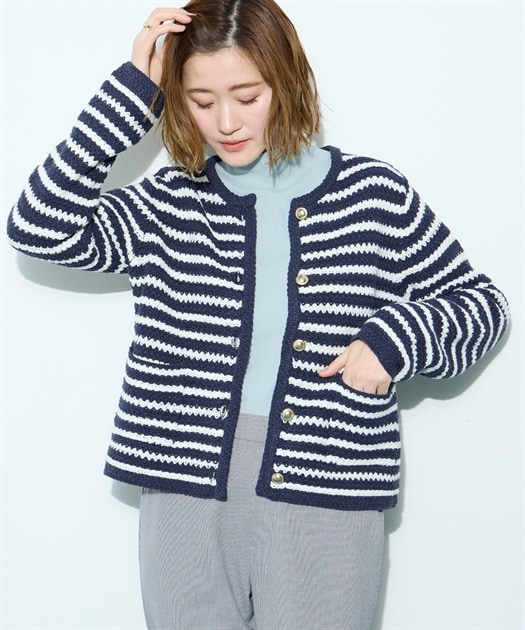 w closet マルチボーダーカーディガン ショート丈 カラフル