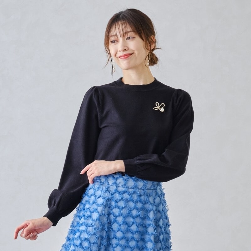 今年の夏大人気だったブローチ付きシャイニーニット/MM438304の、秋冬新作長袖バージョンが登場。