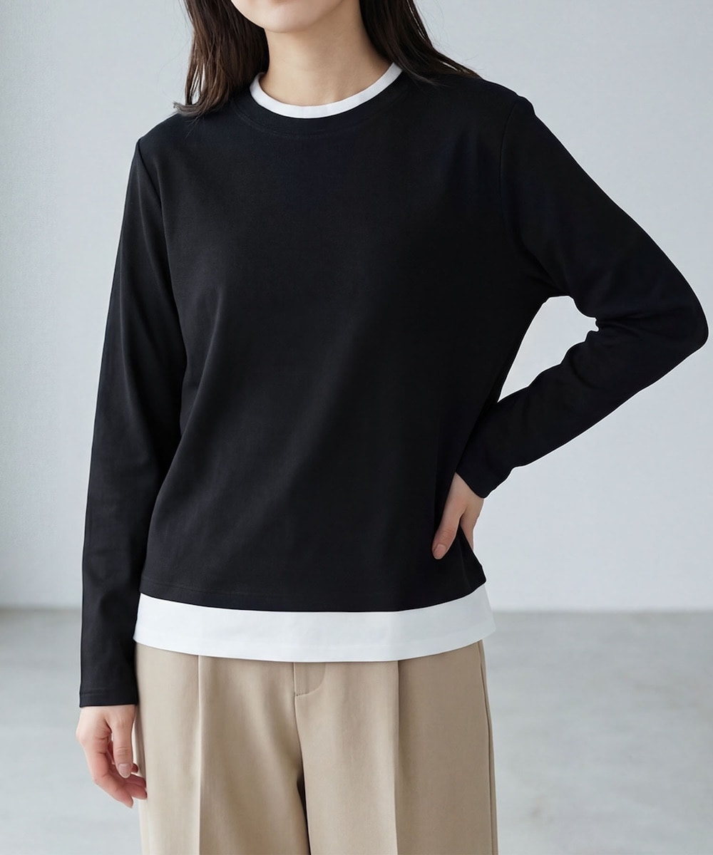 重ね着したように見える配色ヘムがポイントで、