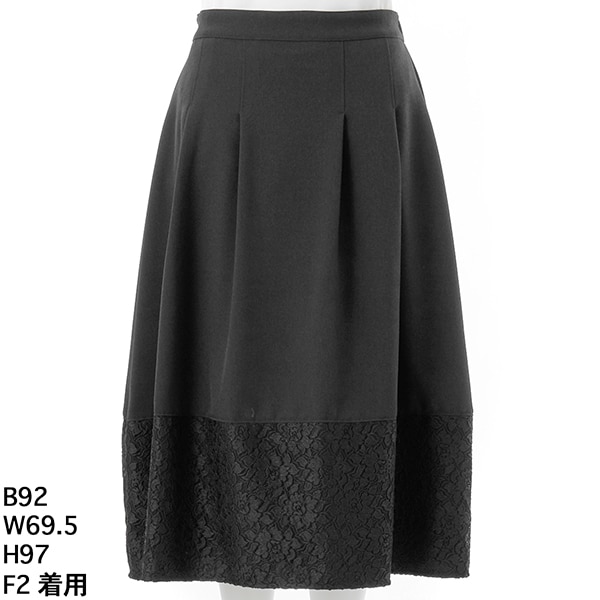 スカート 【M】総レース タイト 膝丈 台形 ストレッチ ウエストゴム