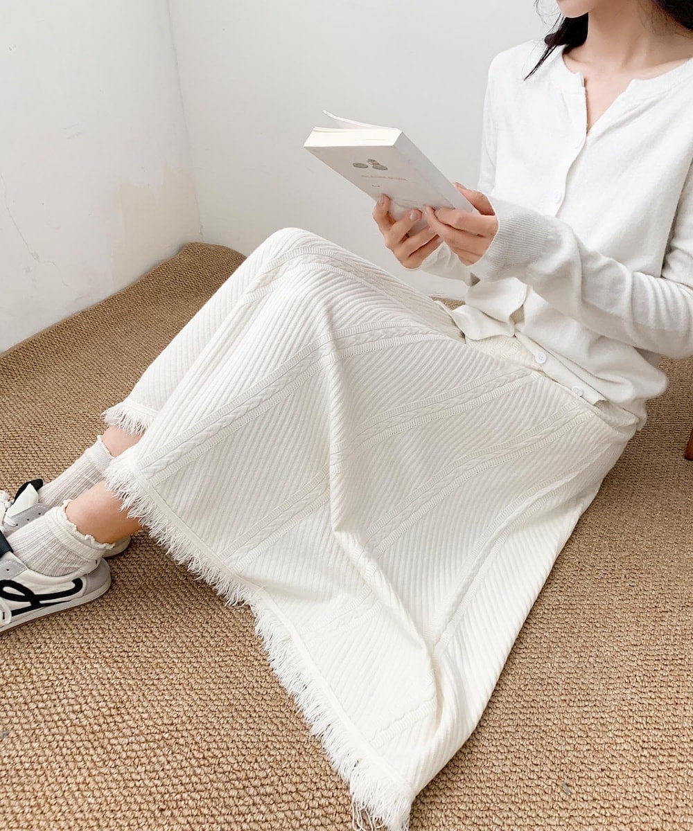 立体感のある編み模様が特徴のニットロングスカート。
