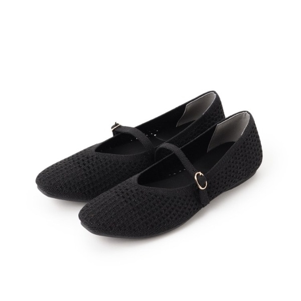 すっきりとしたトゥデザインのメリージェーンフラットパンプス。
