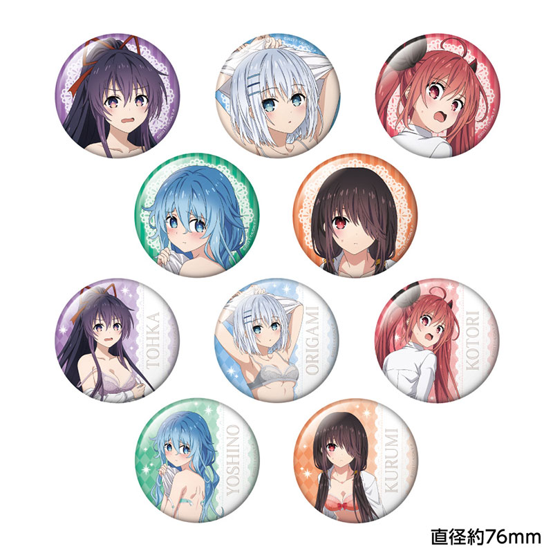 1BOX購入で全10種揃います。 アニメ「デート・ア・ライブV」より、新規描き下ろしイラストを使用したトレーディングおっきめ缶バッジが登場!