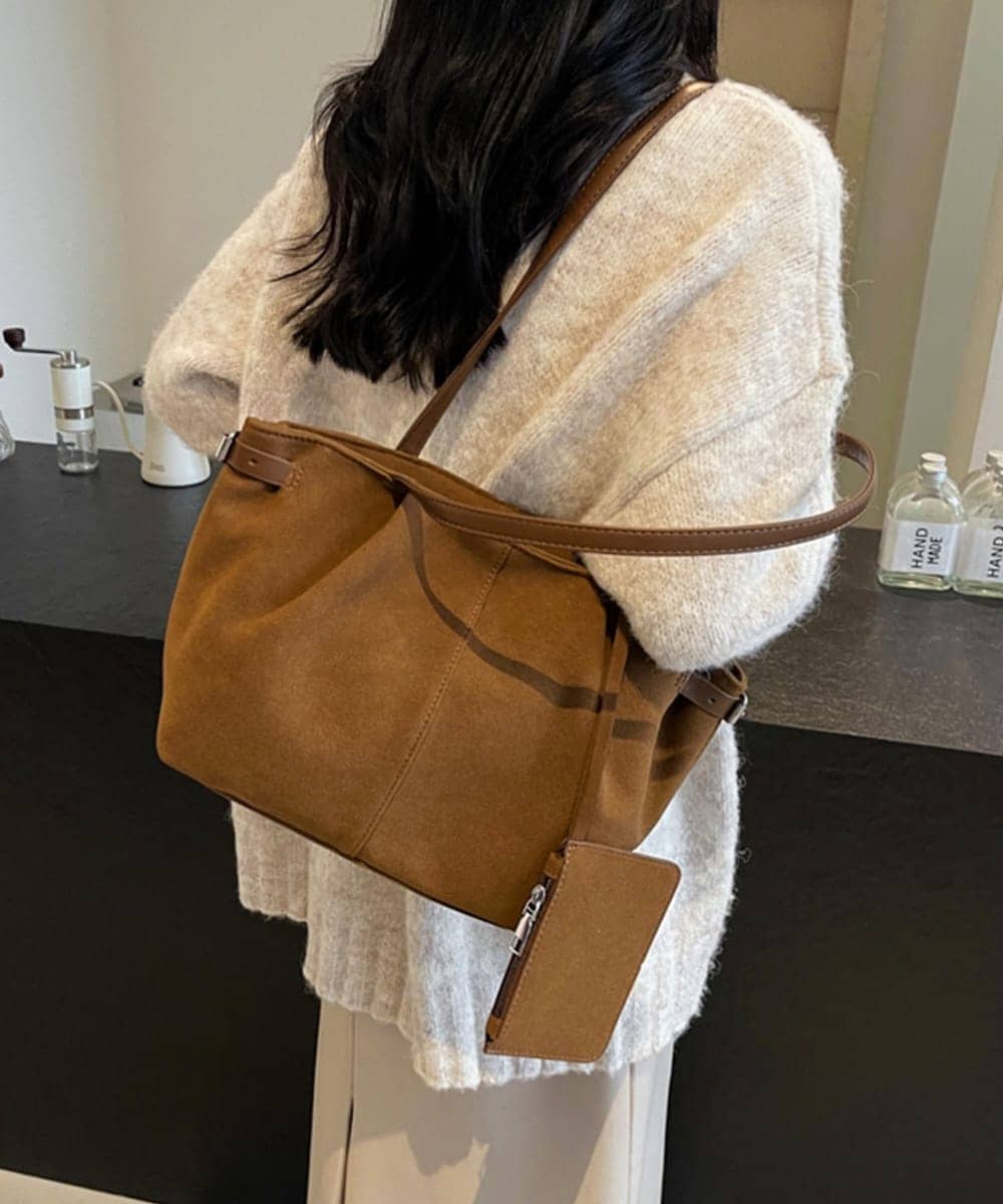 柔らかなスエード調素材を使用した、上品で落ち着いた印象のトートバッグ。