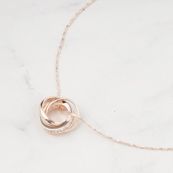CREATERA [クレアテラ] 2WAYで魅せる サングラスホルダー ネックレス メンズ レディース 3連リング ジルコニア ペンダント 長さ60cm 金属アレルギー対応 サージカルステンレス316L おしゃれ プレゼント ユニセックス ギフト (ピンクゴ