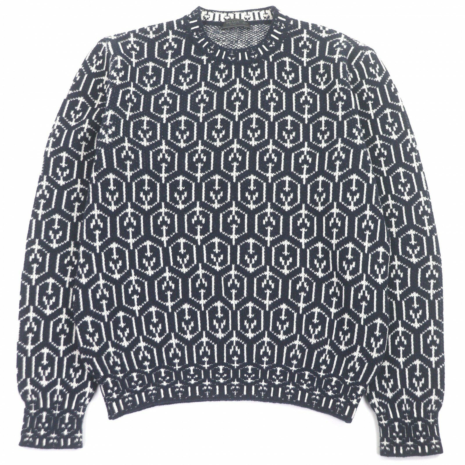 美品★PRADA プラダ 裏地シルク100% ツイードジャケット シングルジャケット アウター ホワイト ネイビー 44 イタリア製 正規品 レディース【中古】
