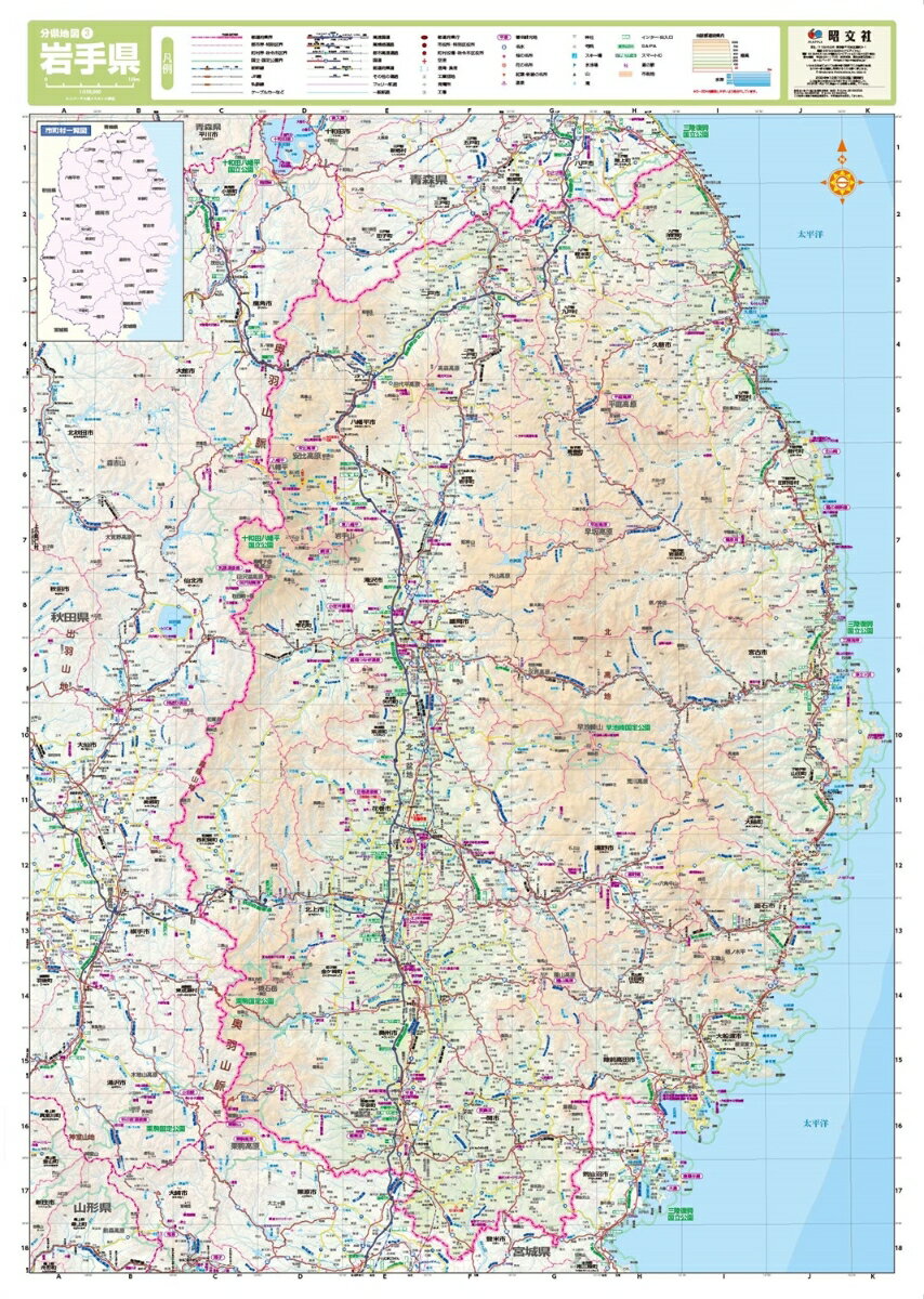 『スクリーン分県地図』は、短辺61cm×長辺87cmの大判紙の表面をラミネートでコーティングした、折り目のない地図。山地・平野・沿岸部などの地形を美しくリアルに表現し、ネットやスマートフォンの地図では分かりづらい都道府県の全域を見わたすことができます。折り目が無いので、壁に貼るのに最適です。●商品概要岩手県全域 1:250,000●サイズ商品のサイズ61×87cm(筒状に丸めてビニール梱包されています)●シリーズ特長・自然地形や行政、道路、鉄道などは、線の太さや色、文字の大きさなどを適切に使い分け、見やすい地図になるように編集しています・地形表現では等高線に沿った色づかいによって、標高がひと目でわかるように工夫しています・都道府県全域を俯瞰でとらえることができるので、見たい場所・行きたい場所の位置関係や距離感がつかみやすくなっています・学校やオフィスの壁に貼って、複数人で見る場合にオススメです利用シーン・分布図作成や出店計画などの商用利用として・おでかけ前の目的地探し、経路検索やプランニングに・おでかけ後の記録、書き込み用に・防災マップや被災マップの作成に