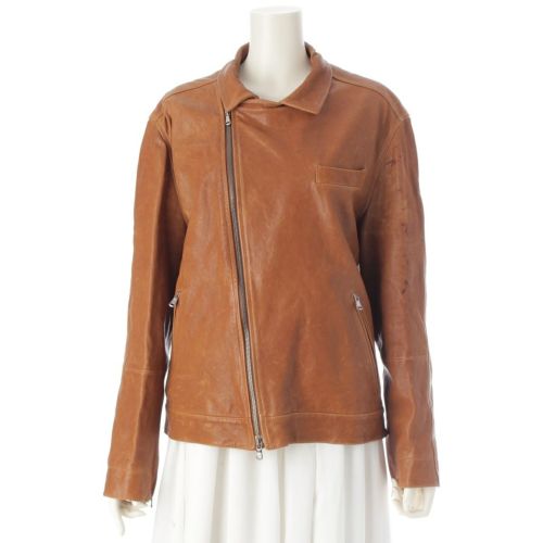 ブルネロクチネリ ラムスキン レザー ダブル ライダースジャケット キャメル M