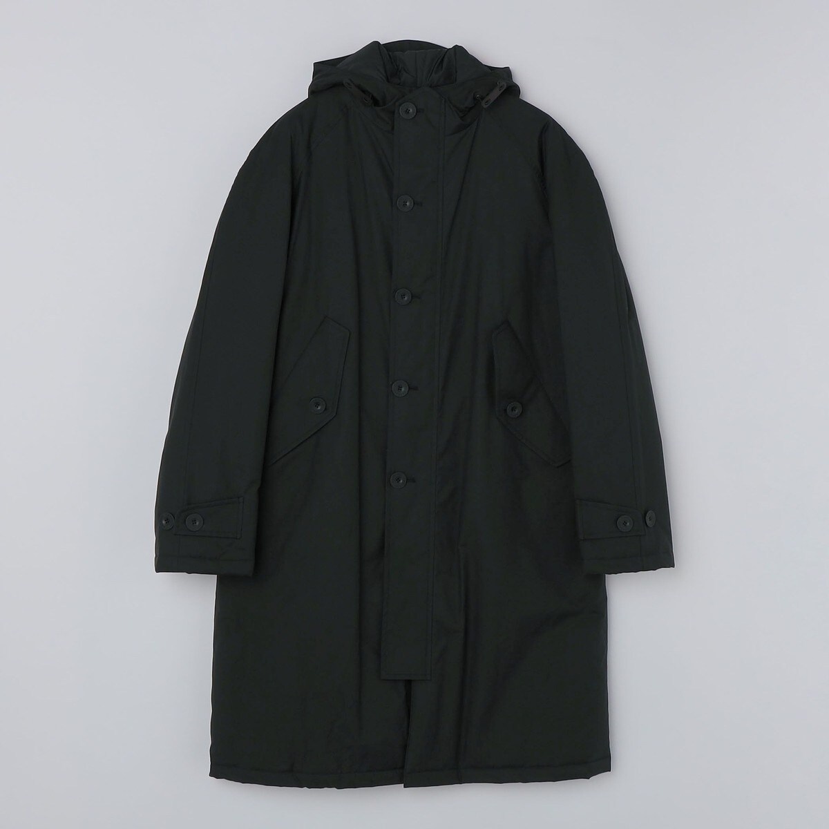 長めの着丈、程よい身幅のゆとり、そしてフードが特徴です。