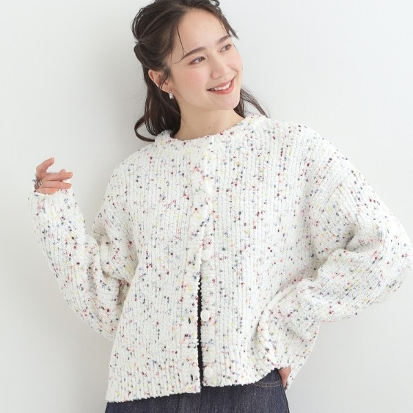 【前後2WAYコンパクト丈】ぽこぽこ MIXニットカーディガン