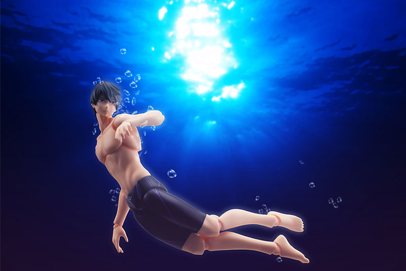 ABS&PVC 塗装済み可動フィギュア 【サイズ】 全高:約 155 mm(ノンスケール) 【セット内容一覧】 フィギュア本体 専用台座 微笑み顔 泳ぎ顔 キャップ被り頭部 飛び込み台 ゴーグル 水面エフェクト エプロン ≪特典≫ figma用オプションパーツ「焼き鯖」