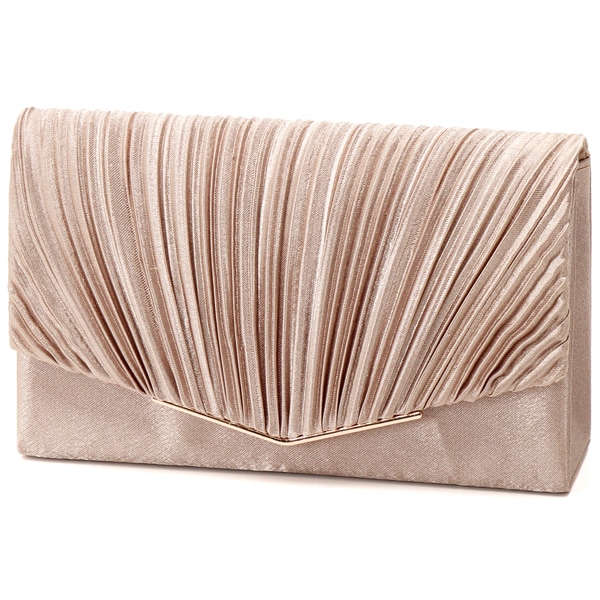 立体プリーツ×Vメタルの対比: 柔らかなサテンプリーツの陰影と、フラップを飾るシャープなVメタル。相反する要素が組み合わさることで、奥行きのある高級感が生まれます。