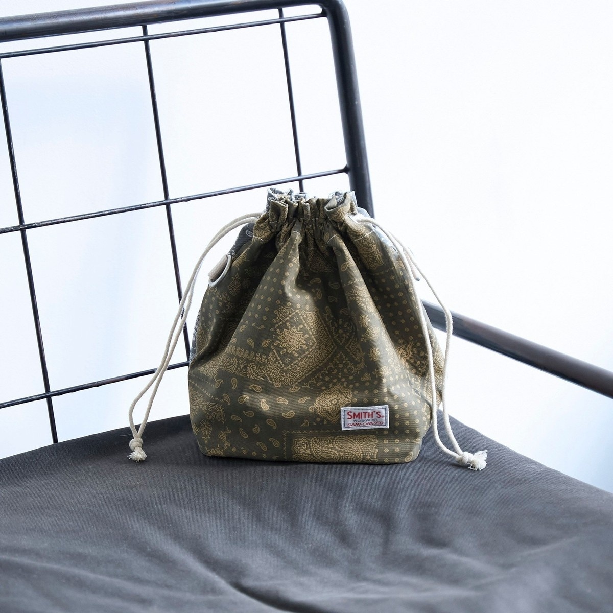 COEN別注でお作りした、コーディネートに映えるペイズリー柄の巾着