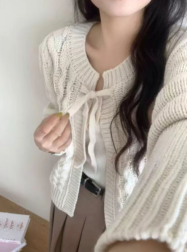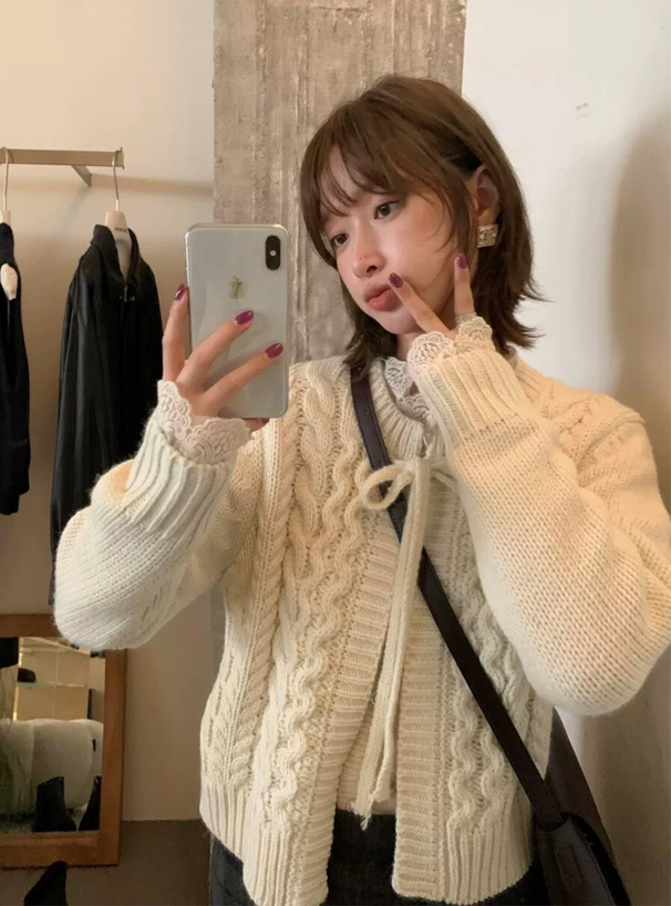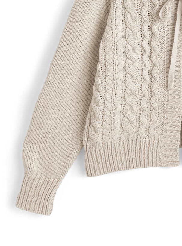 ざっくりとしたケーブル柄の編地が魅力のニットカーディガン。