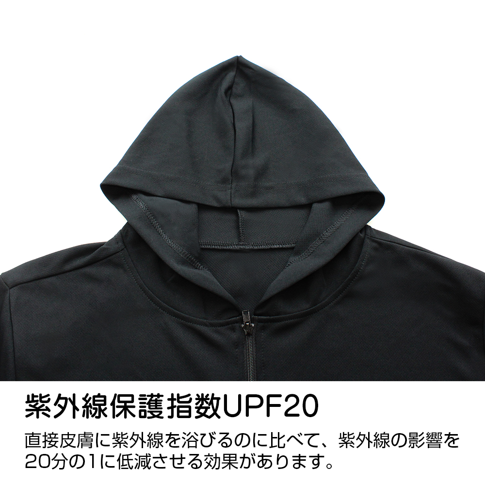 ・速乾性と紫外線防止効果のW効果を備えた実用性の高いパーカーです。
