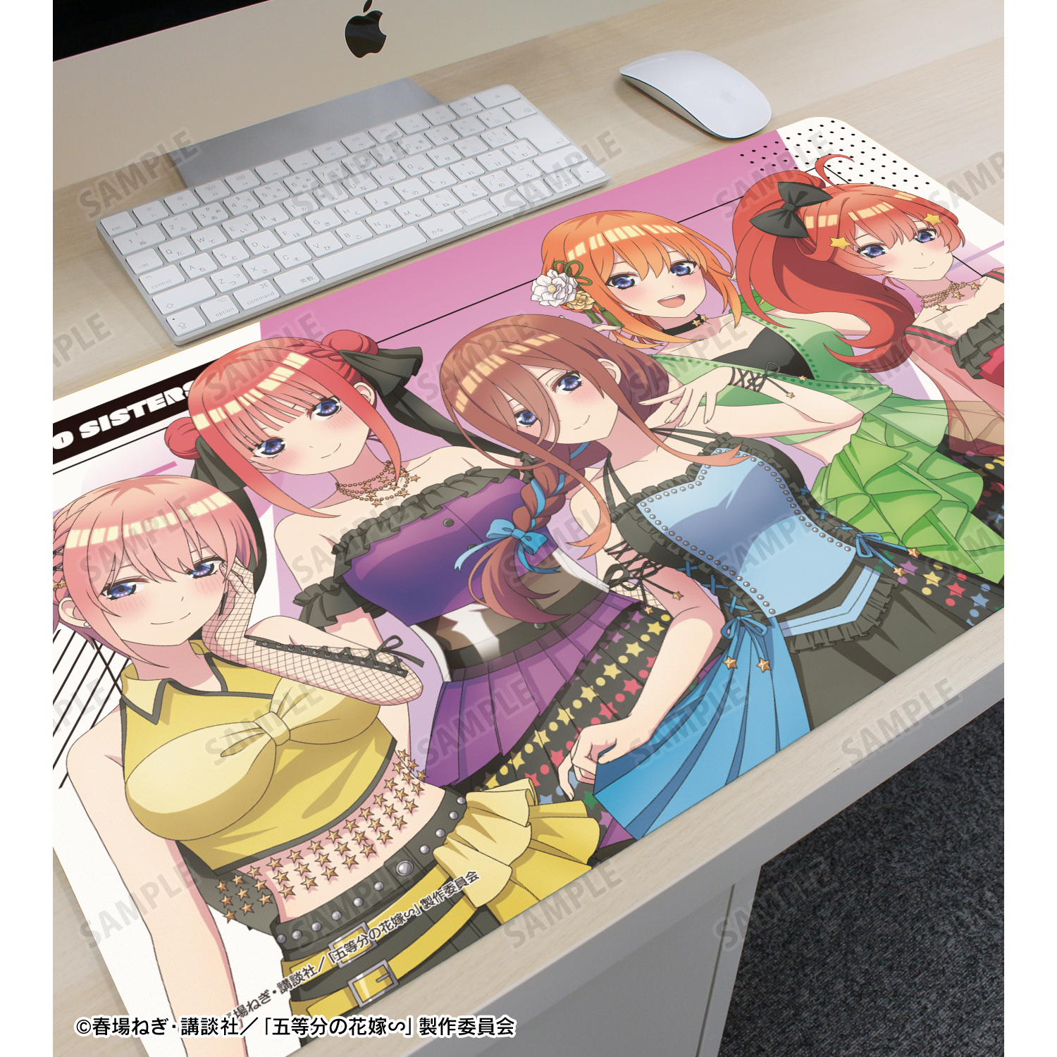 TVスペシャルアニメ「五等分の花嫁∽」×「rockin’star★」のコラボレーションアイテム「rockin’starコラボ 描き下ろし 集合 ロックアイドルver. マルチデスクマット」の登場です。