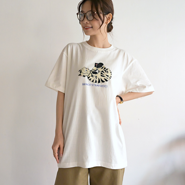 海外の古い絵本のような、ノスタルジックなタッチと色使いが特徴のイラストレーター青井わに さんとのコラボグッズが登場!袖を通すのがわくわくする、ゆったりシルエットのビッグTシャツです。