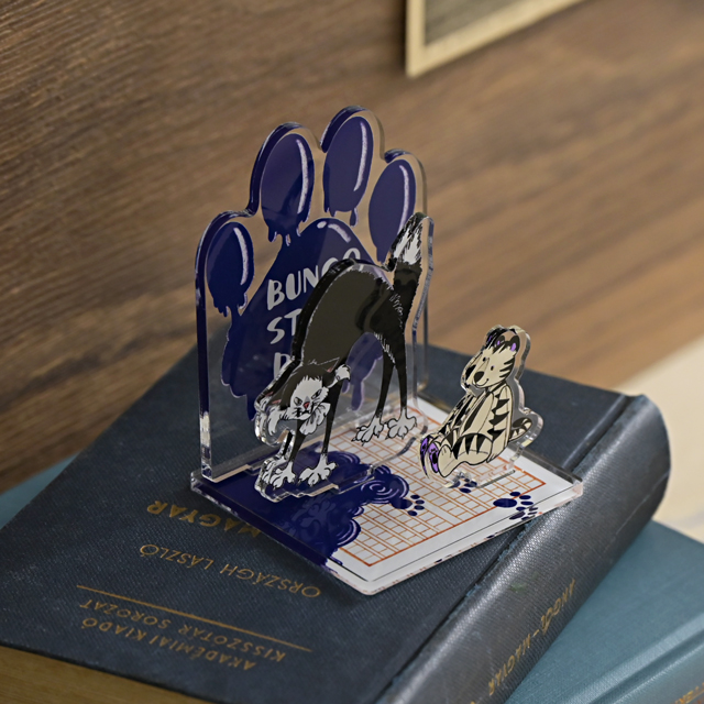 なにやらストーリーを想像させる仕草のキャラパーツや、イタズラして原稿用紙にインクをこぼしちゃったような背景と台座パーツで構成された、お手軽に組立てられる簡単設計もうれしいポイント。