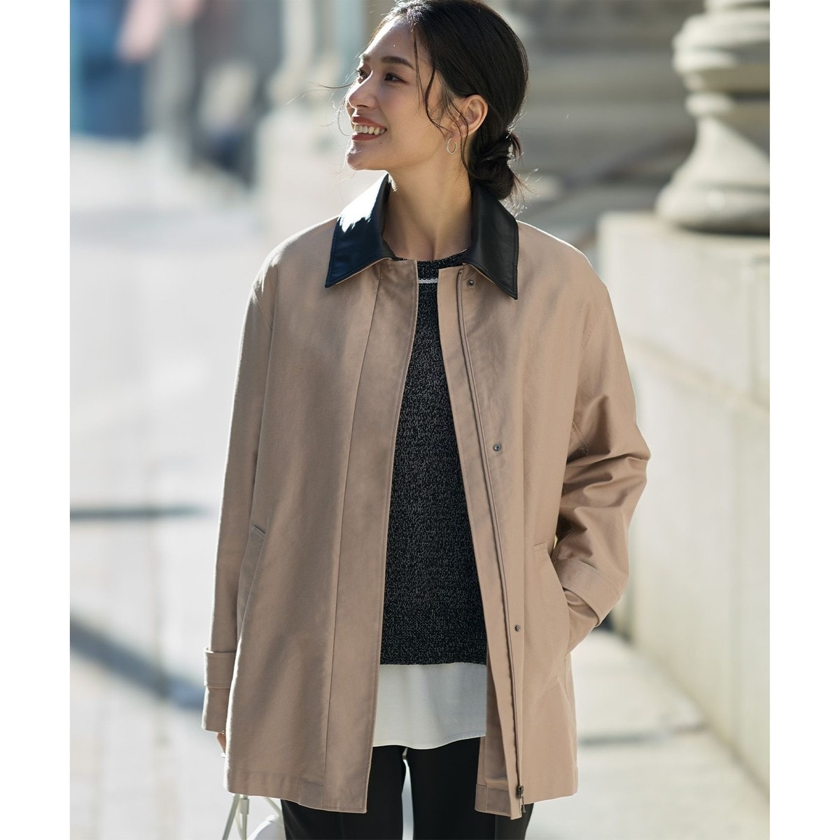 ■デザイン取り外し可能な異素材の配色襟とキルトライナー付きのバーンジャケットです。その日の気分やスタイリングによって印象変化が可能なデザインが魅力です。またキルトライナーベスト付きで、長いシーズン対応が可能です。トレンドのバーンジャケットの雰囲気はそのままに、素材感や細かい仕様に拘り、女性らしさも兼ね備えたアイテムです。