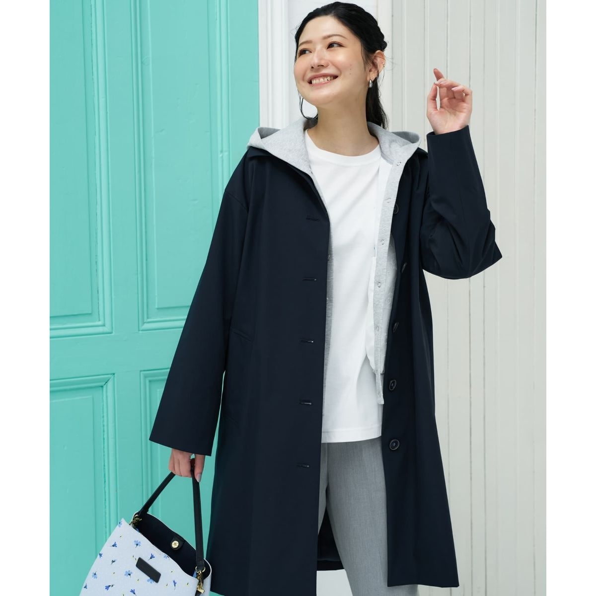 春の装いを軽やかに演出する、ミディ丈のステンカラーコート。素材にはしなやかな風合いと防シワ性に優れた複合繊維のポリエステルを採用。表面にははっ水加工を施しており、シーズン特有の急な雨や泥はねをガードする実用性も兼ね備えています。裏地を備えたやや薄手の仕上がりは、季節の変わり目の体温調節にも最適。無駄を削ぎ落としたミニマルなルックスが、カジュアルからビジネスまで、大人のデイリースタイルを上品に格上げします。