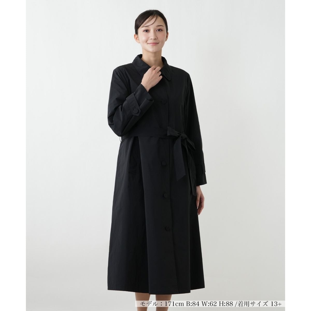 上品な光沢のあるタフタ素材で仕立てた、春の装いにぴったりのドレスコートです。丸みのあるショールカラーが顔周りを優しく、エレガントに演出します。後ろ姿も美しく見せるウエストのギャザーとタックが、現代的な気品を感じさせる印象的なデザイン。付属のベルトでウエストをマークすれば、より一層メリハリのあるシルエットをお楽しみいただけます。セレモニーから普段のお出かけまで、気品ある着こなしを叶える一着です。
