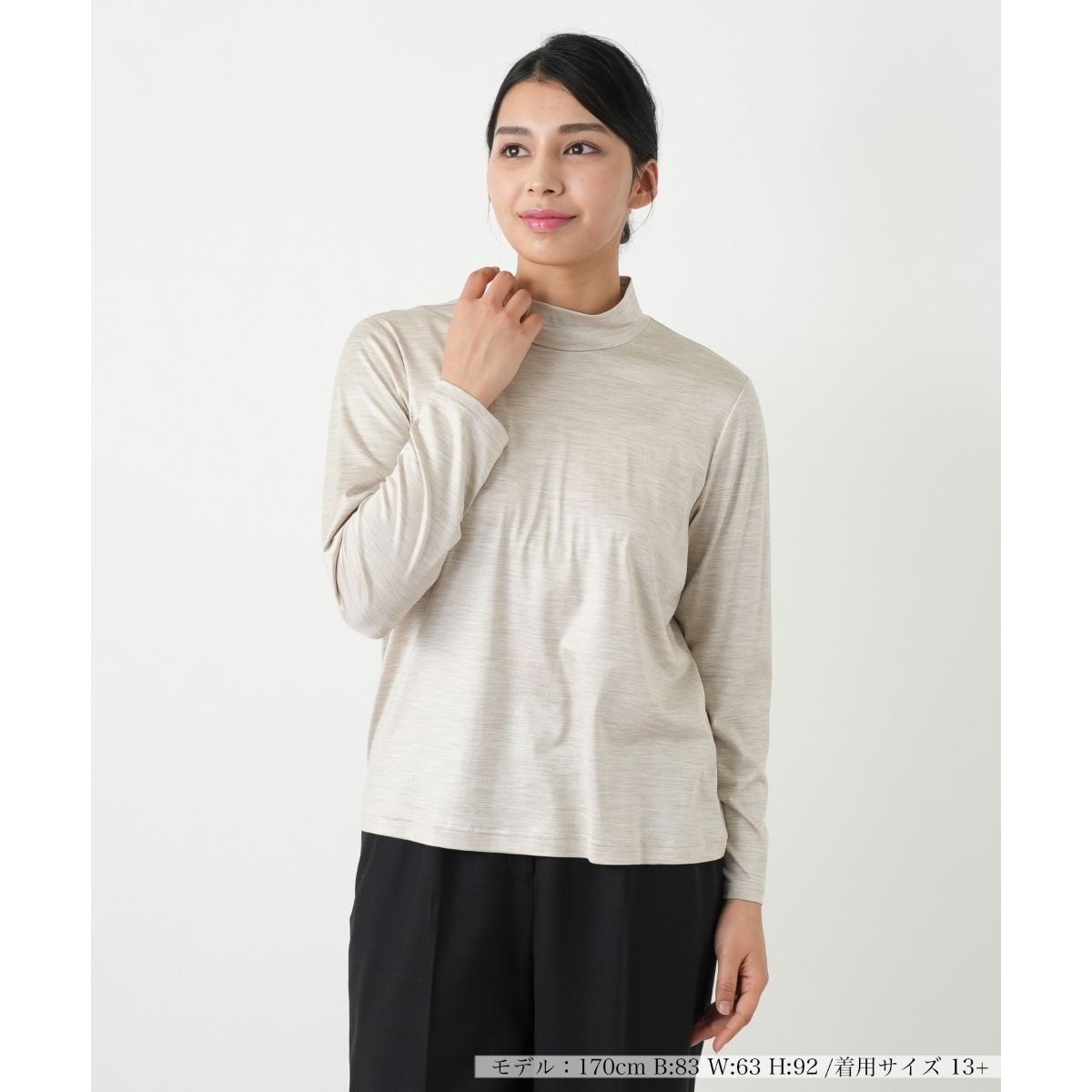 程よい高さのハイネックが上品な、長袖のカットソーです。首元に優しくフィットし、顔周りをすっきりと見せてくれます。一枚ではもちろん、ジャケットやジレのインナーとしても重宝する、着回し力の高いアイテム。滑らかな肌触りの素材で、季節を問わず快適にお召しいただけます。ワードローブの基本として揃えておきたい、シンプルな一枚です。