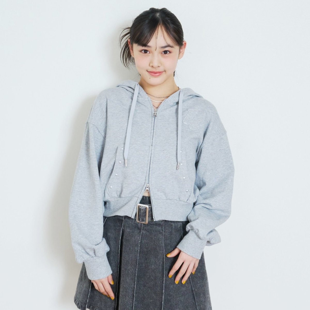 トップ グレー:モデル身長:159cm 着用サイズ:L(160)