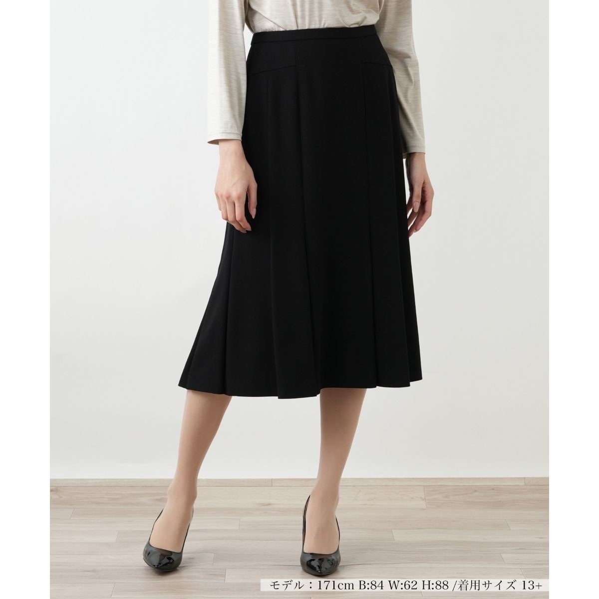 歩くたびに優雅に揺れる、美しいシルエットのフレアスカートです。ウエストはゴム仕様になっており、締め付け感のない快適な穿き心地。たっぷりとしたフレアが気になるヒップや太ももを自然にカバーし、女性らしいラインを演出します。ブラウスやニットなど、合わせるトップス次第で、エレガントからカジュアルまで様々な表情を見せてくれます。